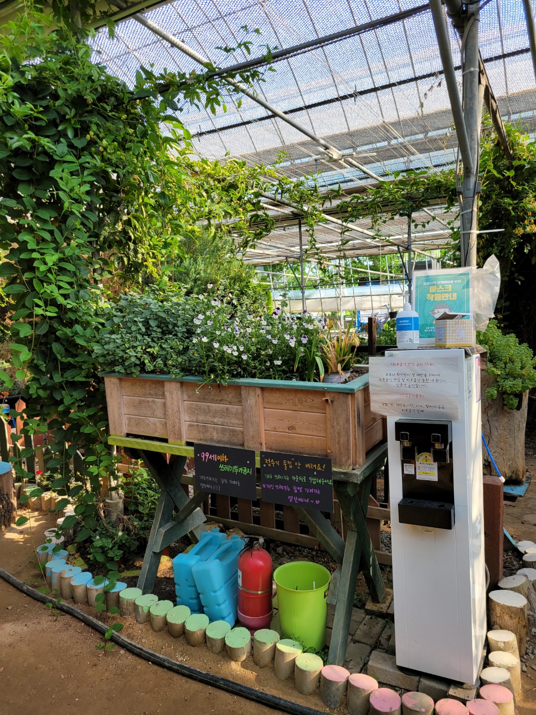 원평허브농원 중간에 정수기도 있습니다. 물병을 싸오신 분들은 저기에서 물을 쓰셔도 됩니다. 마스크 착용은 필수입니다.