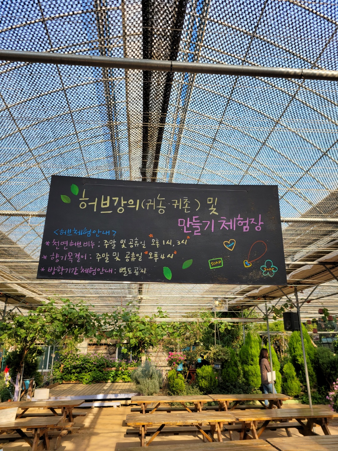 허브농원에서는 허브강의도 진행합니다. 귀농 또는 귀촌하고 싶은 문들에게 정보도 알려주고, 천연 허브 비누 / 향기 목걸이 / 방학 체험 안내 등 알찬 강의가 준비되있네요.